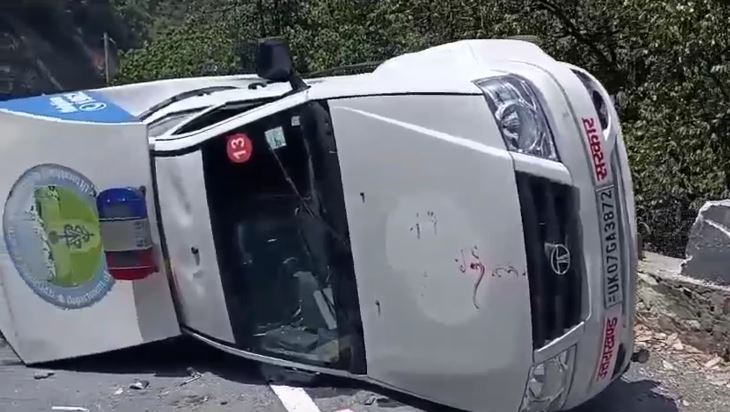 उत्तराखंड: यहां अनियंत्रित होकर सड़क पर पलटी पशु एंबुलेंस, दो लोग घायल