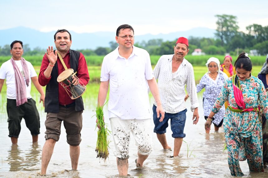 शनिवार की सुबह खेतों में किसानों के बीच हल चलाते, धान की रोपाई करते सीएम पुष्कर धामी नज़र आये। हुड़के की थाप और गीतों के बीच किसानों के साथ धान…