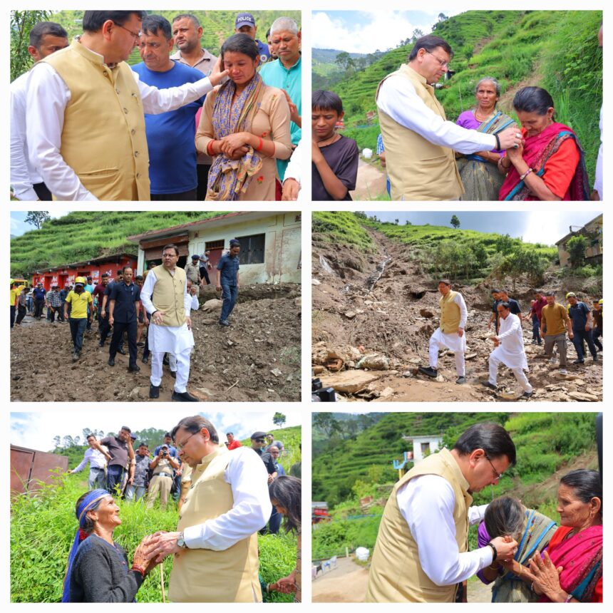 मुख्यमंत्री ने प्रभावितों को ढाँढस बंधाया और कहा कि आपदा की इस घड़ी में कोई भी खुद को अकेला न समझे, उन्होंने कहा पूरा राज्य पीड़ितों के साथ खड़ा है। उन्होंने जिलाधिकारी को निर्देश दिए कि प्रभावितों के पुनर्वास एवं विस्थापन की कार्यवाही त्वरित गति से की जाय। मुख्यमंत्री ने निर्देश दिए कि अतिवृष्टि से हुई क्षति का आकलन करवाए जाने के साथ सर्वप्रथम ग्रामीणों को सुरक्षित स्थानों पर भेजा जाय। उन्होंने कहा कि राहत केंद्रों में बिजली, पानी, शौचालय, दवाई, राशन की पर्याप्त व्यवस्था की जाय। साथ ही उन्होंने वाडिया इंस्टीट्यूट के माध्यम से सर्वे करने के भी निर्देश दिए।
