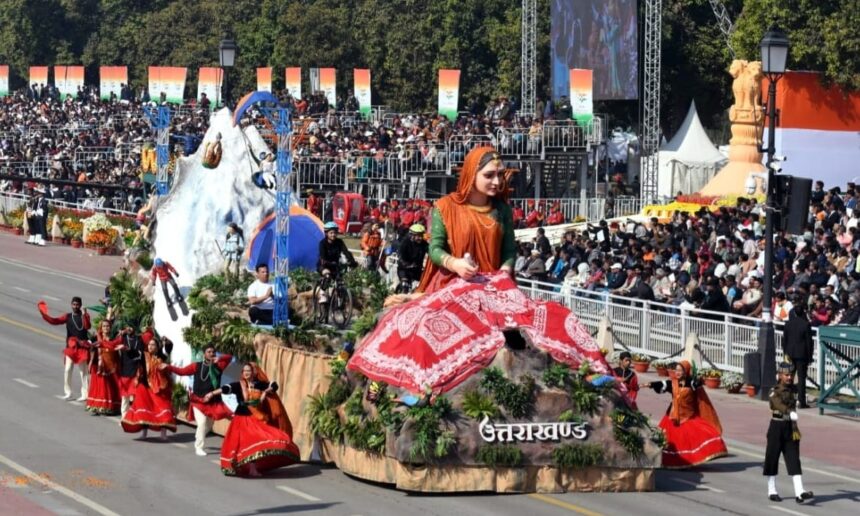 महानिदेशक सूचना बंशीधर तिवारी ने कहा कि कर्तव्य पथ पर गणतंत्र दिवस परेड में उत्तराखंड की झांकी में राज्य से 16 कलाकारों ने भाग लिया। झांकी में उत्तराखण्ड की सामाजिक, सांस्कृतिक और धार्मिक महत्व को दर्शाती प्रसिद्ध ऐपण कला, उत्तराखण्ड के साहसिक खेलों एवं साहसिक पर्यटन को चित्रित किया गया। उन्होंने कहा कि मुख्यमंत्री के निर्देशानुसार राज्य सरकार द्वारा सांस्कृतिक विरासत को बढ़ावा देने और साहसिक खेलों को राष्ट्रीय स्तर पर पहचान दिलाने के लिए गणतंत्र दिवस की परेड में झांकी के रूप में प्रदर्शित करने का निर्णय लिया गया।